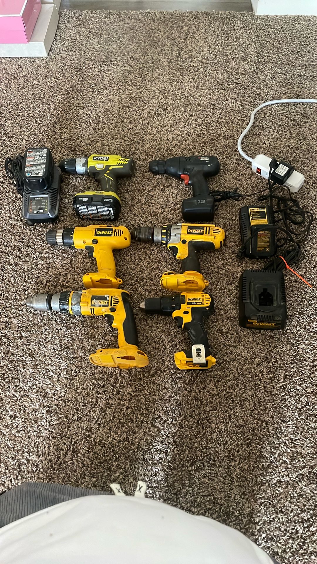-Ryobi drill and battery packs work great -Black and decker drill works great -Dewalt drills work but don’t have battery packs but includes chargers $90 for all