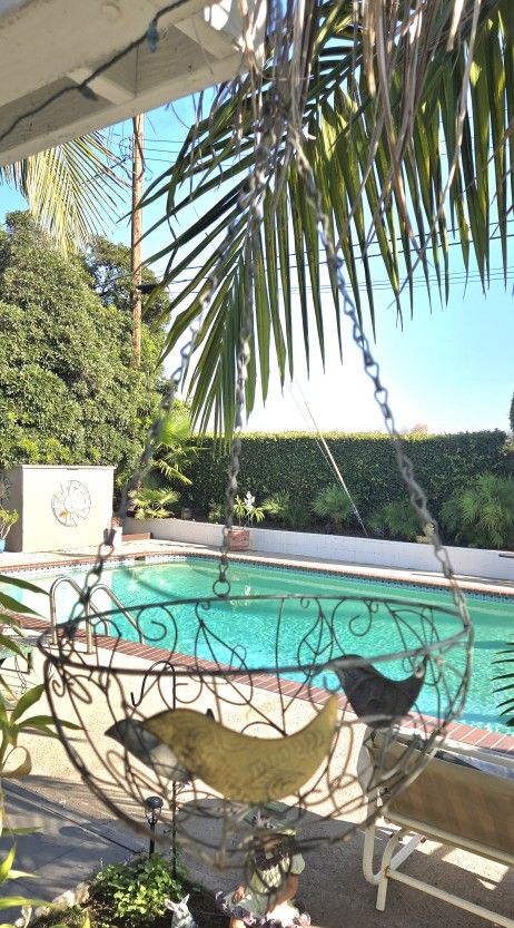 Metal hanging planter with bird images 12 inch wide 6 inch tall nice decoration for backyard or porch local pickup