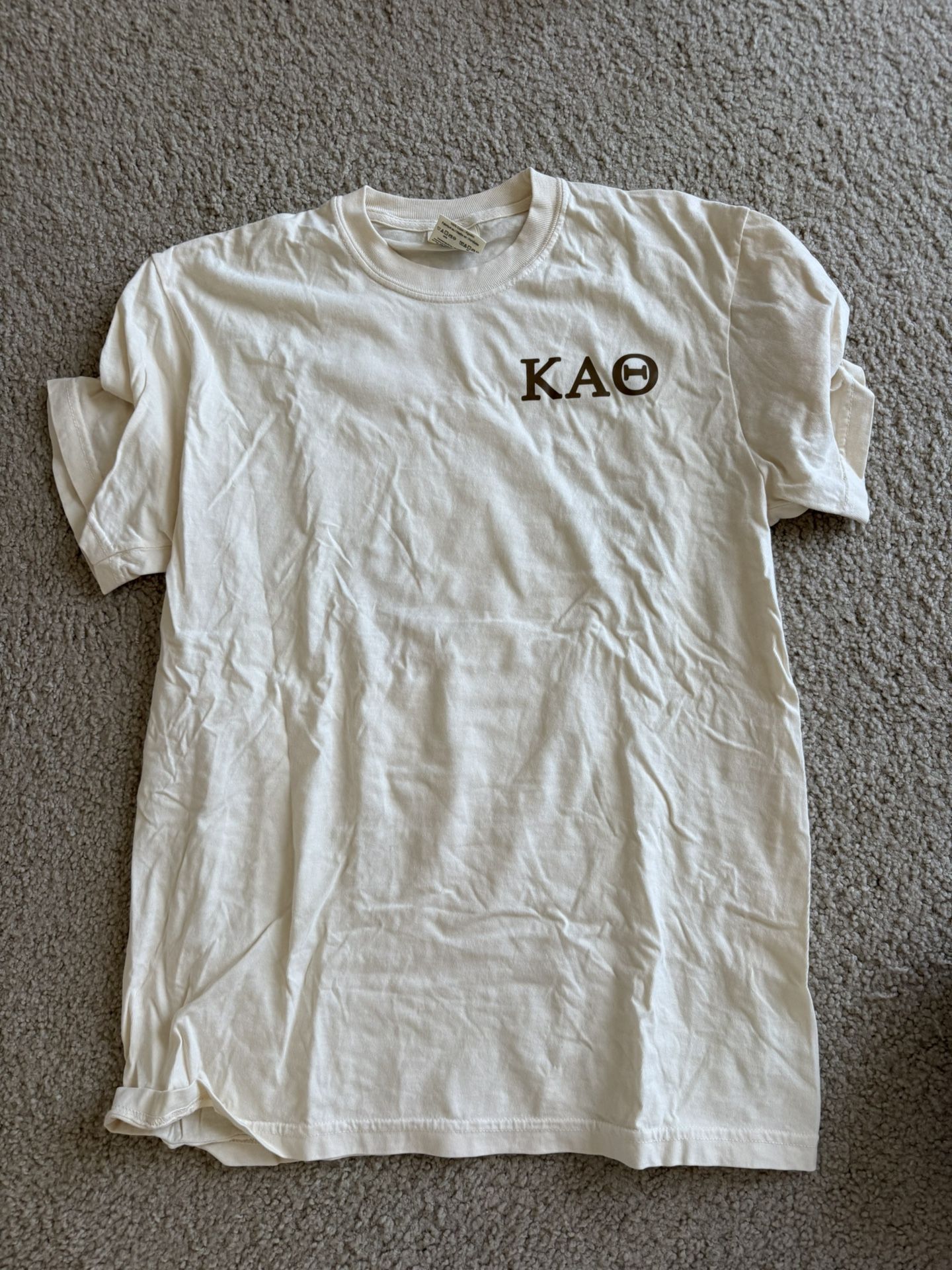 like new tee only worn once! cream tee with brown, black, and gold detail!