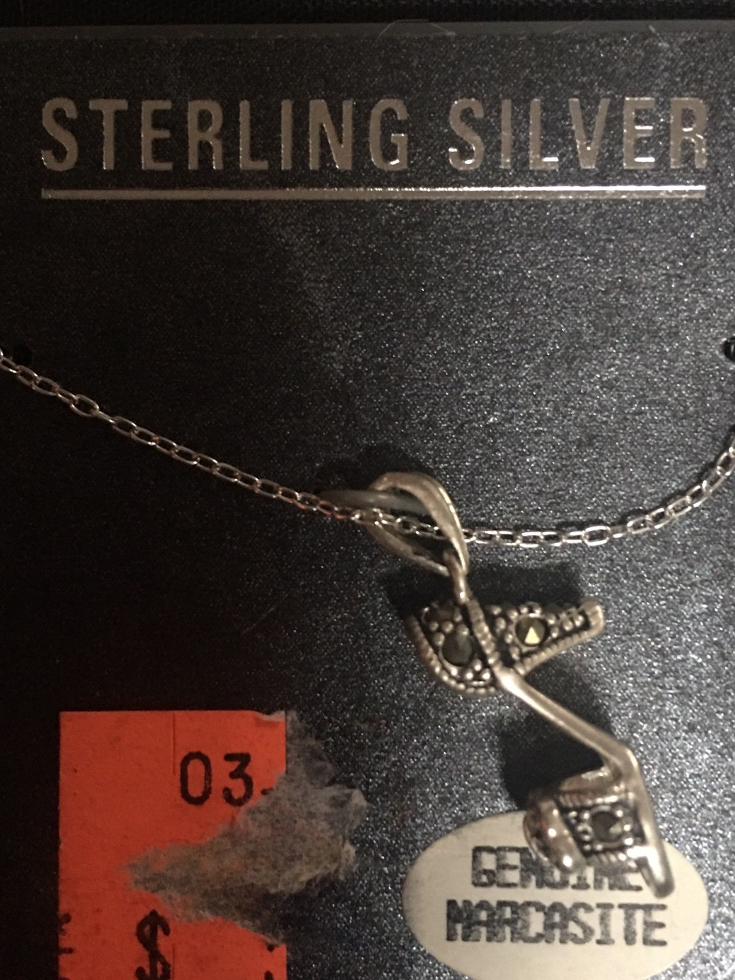 Sterling silver necklace with shoe charm with marcasite