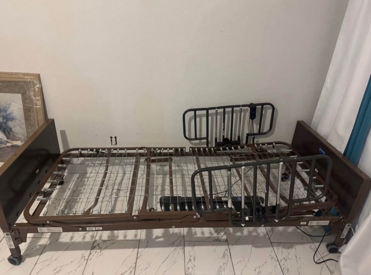 ✔️ Electric remote control for incline and decline ✔️Handle for height level adjustment ✔️ Head & foot adjustment ✔️ Adjustable side rails (to go up and down) ✔️ 450 lb weight capacity ✔️ Bed Height Range: 15.00" - 20.00" Perfect for home care, recovery, or assisted living use. Clean, functional, and ready for use. $400 OBO Fully electric hospital-style bed with adjustable head and foot positions. Includes sturdy adjustable safety rails on both sides and smooth-rolling wheels for easy repositioning. IF LISTED ITS AVAILABLE WILL NOT RESPOND TO “is this available?” SERIOUS INQUIRIES ONLY PLEASE! If wanting it delivered send your area zipcode I will charge by business mileage fair price.