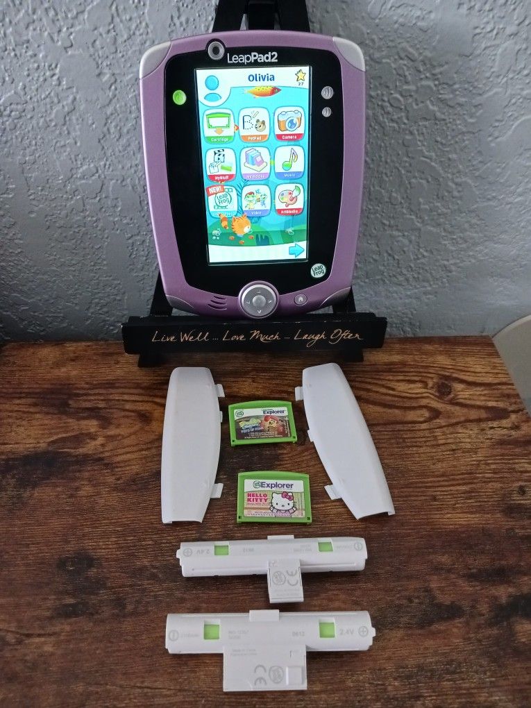 You're looking at a LeapFrog LeapPad 2 Bundle - Purple & Silver Edition (Tested & Working). I will ship free, fast, and carefully by way of USPS Ground. However, you may select to pay for priority shipping. ■This listing features a well-maintained LeapFrog LeapPad 2 handheld console in a vibrant purple and silver colorway. A great find for tech enthusiasts or collectors of vintage digital handhelds, this unit is fully operational, as shown in the images. ■Product Features & Condition: ☆Console: Purple and silver LeapPad 2 with a clear, functional display and responsive physical buttons. ☆Software Included: Two physical cartridge games are included: 1. Hello Kitty & Friends: Sweet Little Shops 2. SpongeBob SquarePants: Fists of Foam ■Power & Accessories: * Includes two LeapFrog rechargeable battery packs (2.4V). ☆Comes with matching white battery ☆compartment covers. ☆Includes a purple wrist lanyard for secure handling. ■Status: Tested and confirmed to power on and load game cartridges (see photos for screen verification). ■Technical Specifications: Model: LeapPad 2 ■Power Source: Compatible with standard AA batteries or the included rechargeable packs (charger not included). ■Connectivity: Features a cartridge slot, stylus port, and front/back cameras. ☆Note to Buyers: This is a pre-owned item. Please review the high-resolution photos for the exact cosmetic condition of the device and accessories. The display is bright and the internal software is responsive. ■The LeapFrog LeapPad 2 Explorer Learning Tablet in Purple features a variety of educational content, including interactive games and activities featuring characters like Hello Kitty and SpongeBob. This electronic learning toy, released in 2012, is suitable for adults to decide on the recommended age range. With its LeapPad 2 platform, this tablet offers engaging learning experiences in a fun and colorful way, making it a great tool for young learners to explore and expand their educational horizons.
