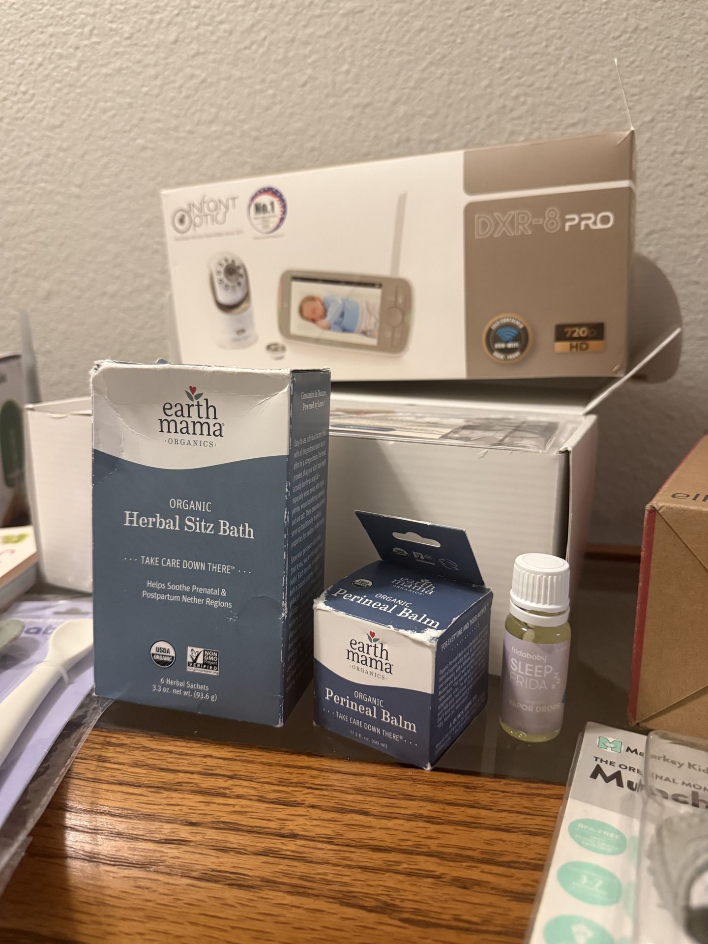 EarthMama Herbal Sitz Bath: $8.00 (new) Perineal Balm: $8.00 (new) SleepFrida Baby Drops: $4.00 (used once)