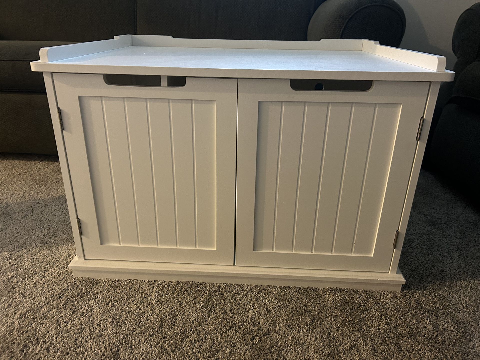 Cabinet for kitty litter box. See amazon description below. Original amazon price is $129.99. unipaws Cat Litter Box Enclosure Furniture, Cat Washroom, Hidden Litter Box Cover, Cabinet for Large Cat, Dog Proof Cat Litter Boxes, Hideaway Litter Box, Cat House, White