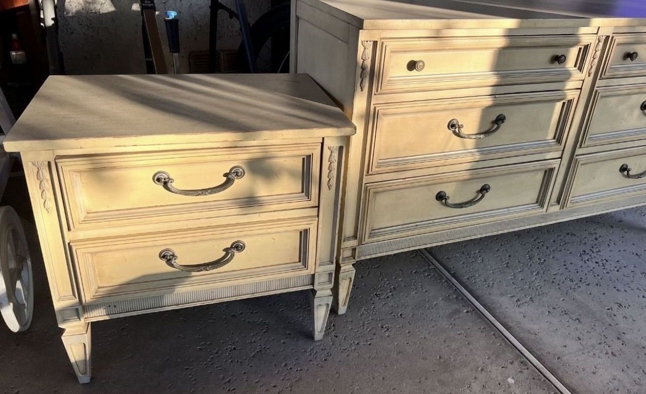 French Shabby Chic 6 Drawer Dresser and Painted Nightstand