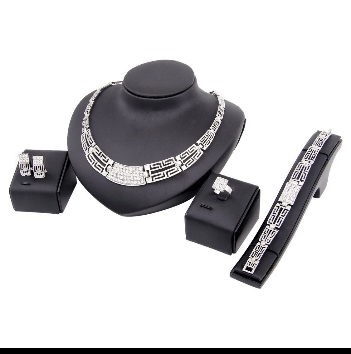 Gold Plated Necklace Earrings 4 Piece Women Jewelry set Twisted Singapore Chain