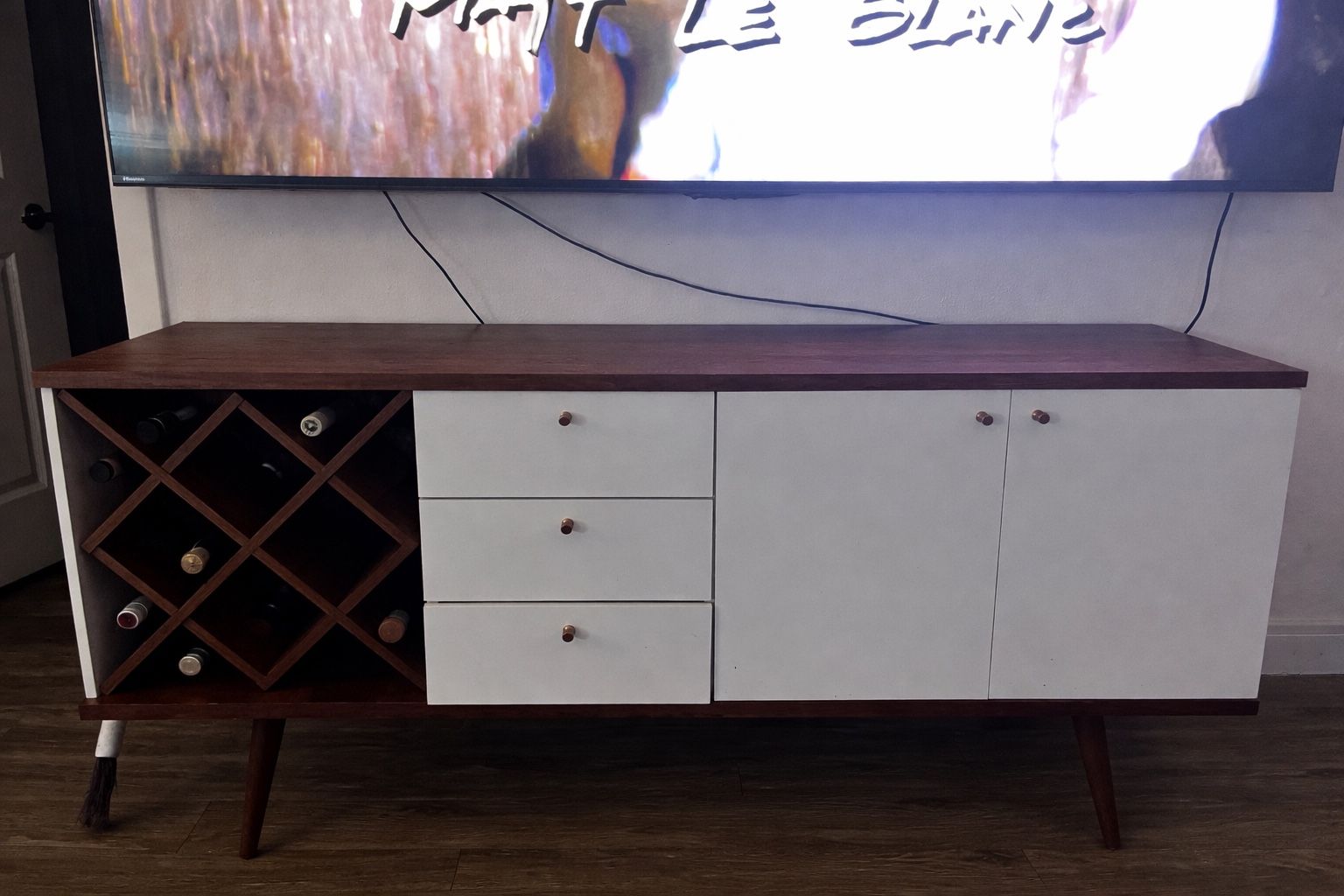 Great condition, lots of storage space. Currently used as an entertainment center with electronics and cables stored in the larger cabinet area. 64 inches across 31 inches tall 17.5 inches deep. Must pick up.