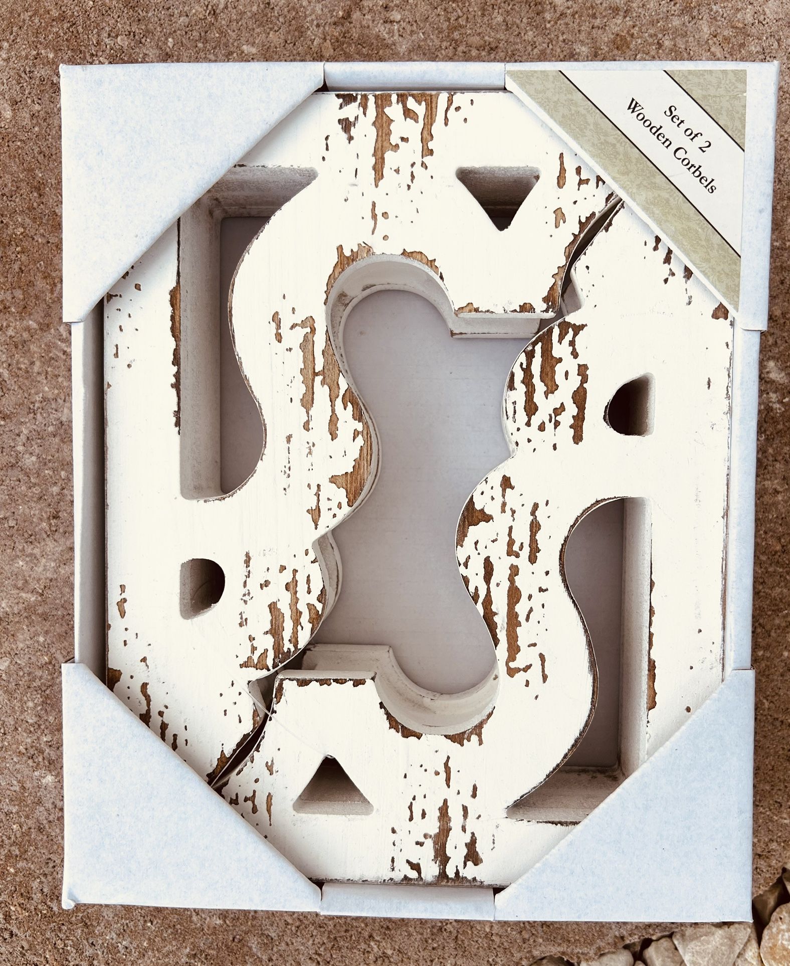New In Box Home Decor Set Of 2 Wood White Distressed Multiuse Corbels