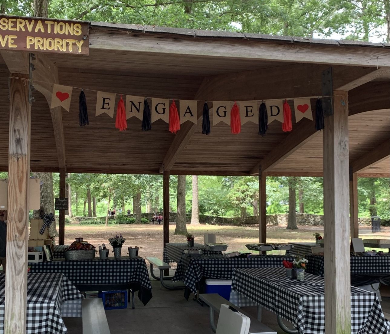 “Engaged” banner used one time at engagement party. Added the ties for more color but they can be removed.
