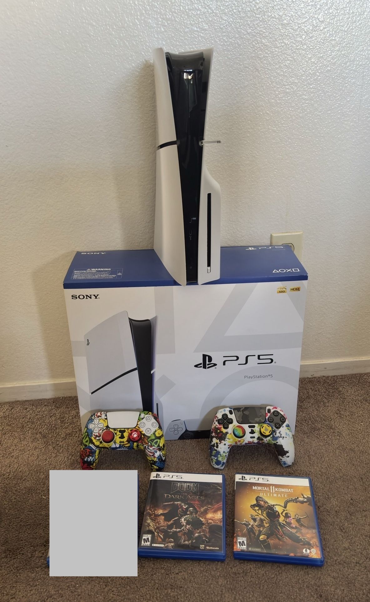 Ps5 Slim Disk Edition, with 2 controllers and 2 games. HABLO ESPANOL. NO TRADES, NO DELIVERY .