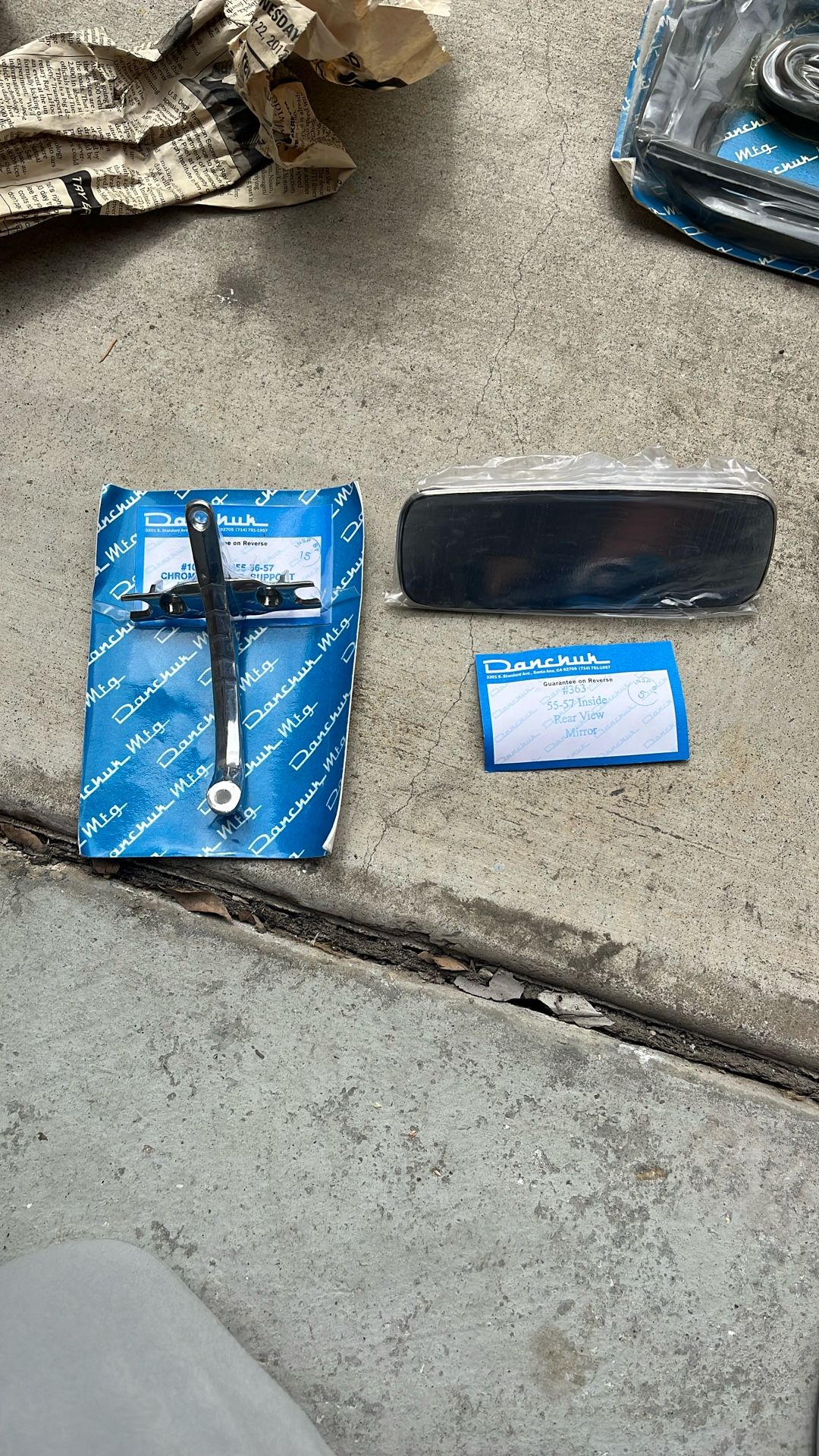 Selling brand NEW Danchuk mirror support, and rearview mirror.