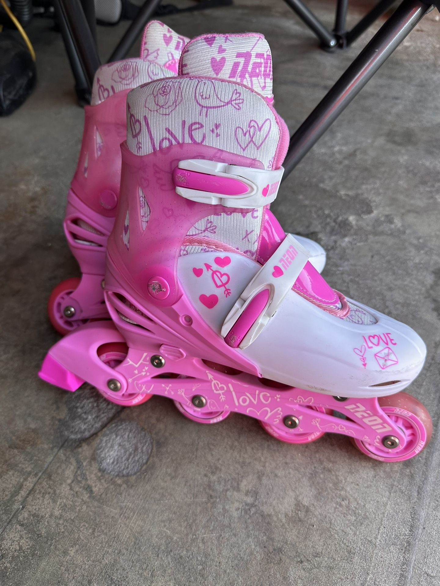 Girl Skates (Size 3-6) with also interchangeable wheels . Fairly new, used only a couple of times .