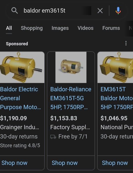 Baldor EM3615T 5 Hp Electric Motor still in the box just dusty. Maybe willing to trade for Golf clubs depending on what they are.
