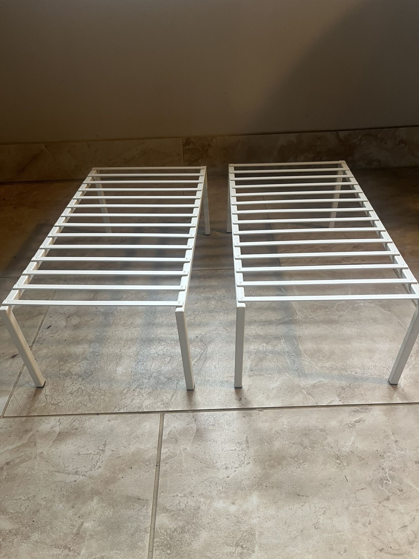 White plate shelves, mini air fryer, stainless steel garbage can, paper towel holder im moving! Take it all for 60$ need it gone