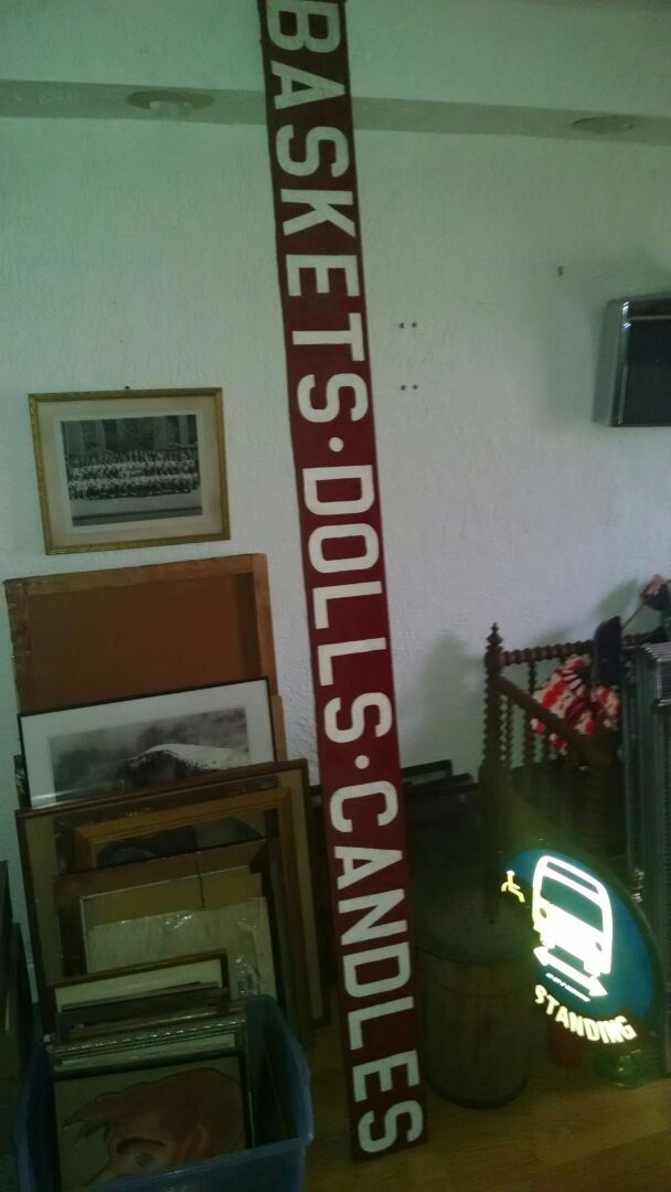 From an old Vermont country store 2 sided 96" tall BASKETS DOLLS CANDLES GALLERY OF VT ARTISTS