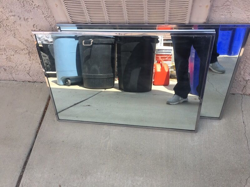 Retro mirror with stainless steel frame around it measurement width 25"/37"length. I took it out of a house that was build in the 50th. I only have one left. The mirror and frame cleans up good.