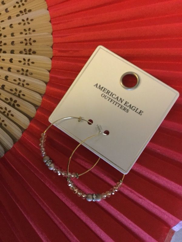 Very nice hoop earrings from the American Eagles outfitters store. Fashion earrings - classy jewelry with beads & crystals. Price $15 / The rose floral fashion ring is size #5 and priced $11.50 See photos for details.