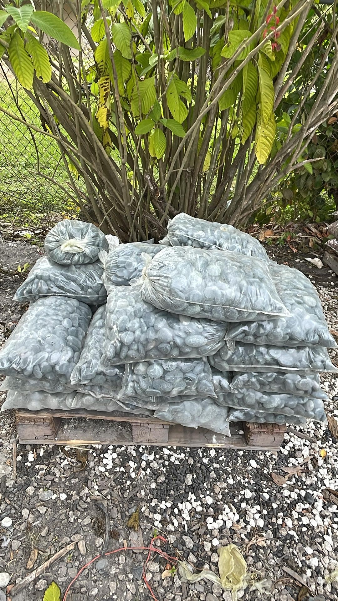 Non-polished gray stone, 2–3 inch size. Ideal for landscaping, borders, and decorative outdoor areas. Strong, natural stone with a clean look. The bag weighs 40 pounds.
