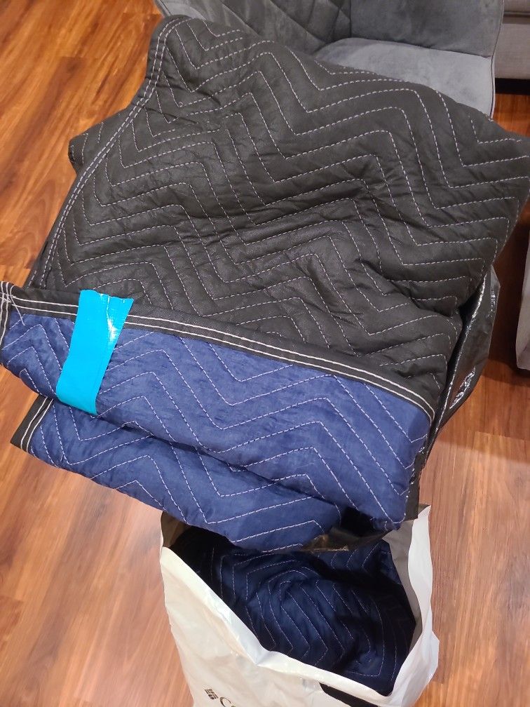 Selling assorted new and clean moving blankets. Some are extra large and some are ripped in halves all new and clean. Used one time with plastic wrapping.