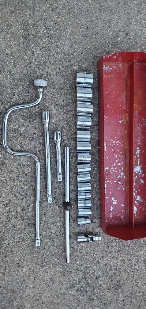 15pc URREA 1/2” Drive SAE 12 Point Shallow Socket Set In Metal Storage Box Missing driver, otherwise like new. I CONSIDER ALL RESONABLE OFFERS