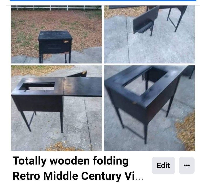 Wooden sewing table for $14.Have top damage of vanire, and on the sides.Still is solid and sturdy piece.