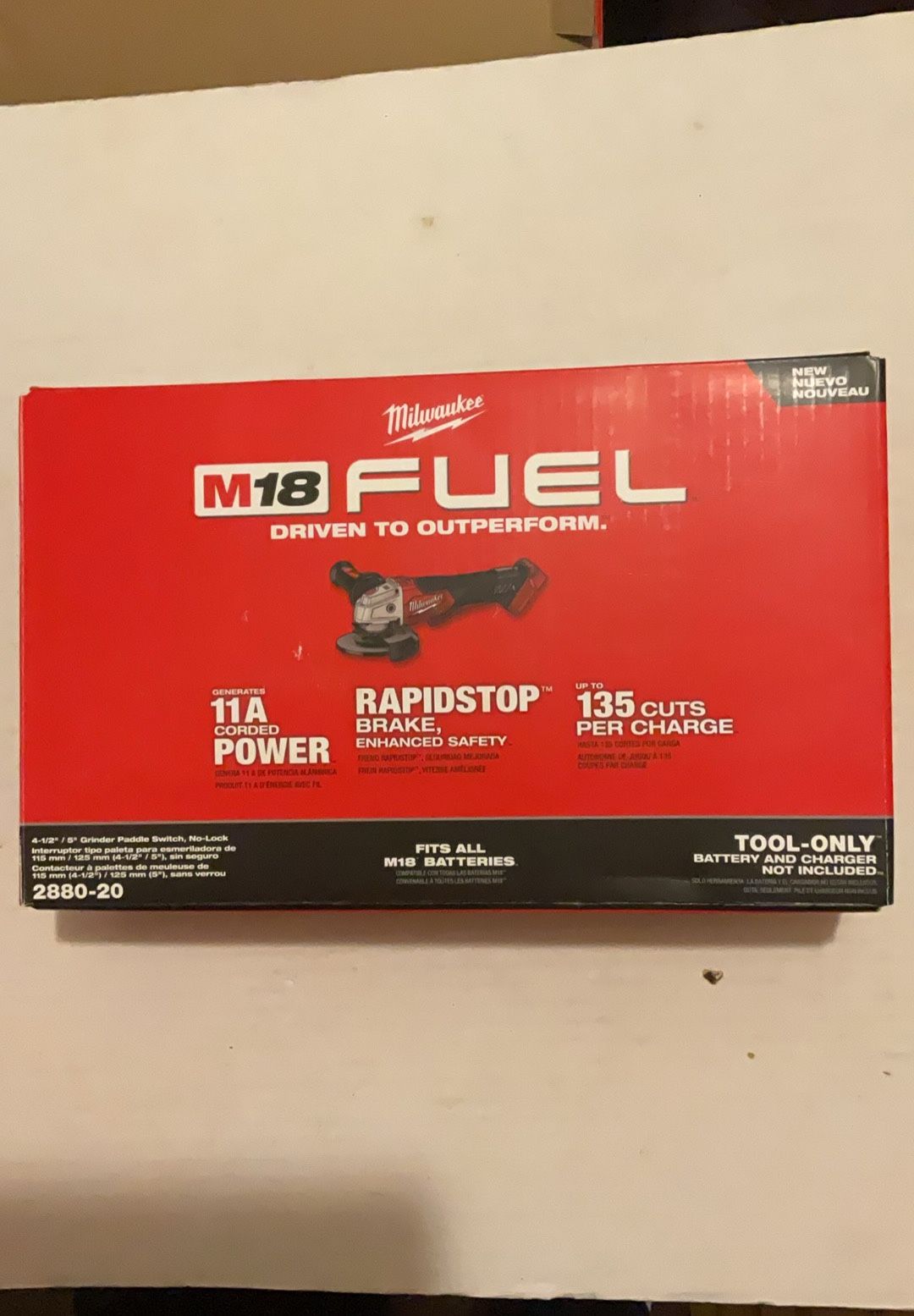 Brand New Milwaukee M18 Fuel Brushless 4-1/2” - 5” Grinder ( Tool Only ). Nueva Esmeriladora Milwaukee M18 Fuel Brushless de 4-1/2” - 5” Pulgadas, Solo la Esmeriladora. Hablo Español. 150 Firm on Price. 150 Firme en Precio.