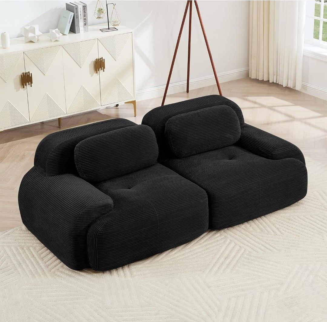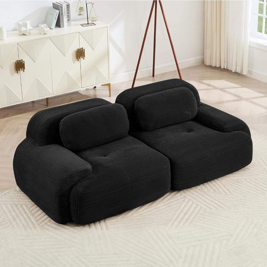 80" Modern Compressed Boneless Love Seat Couches, 2 Seater Large Sectional Couches for Living Room, Black Corduroy Cloud Modular Sectional Sofa, Memor