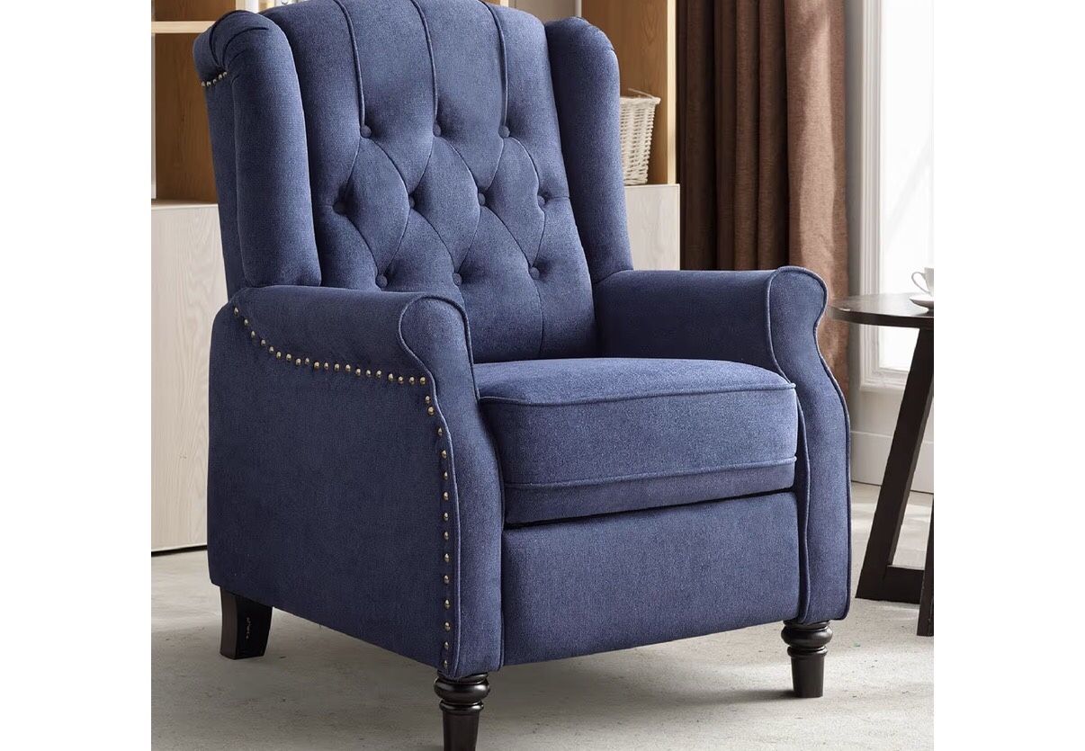 Push Back Recliner Chair,Accent Chair, Mid Century Wingback Recliner, Fabric Push Back Recliner Chair Single Armchair Sofa with Rivet Decoration, Button-Tufted Back for Living Room,Dark Blue120