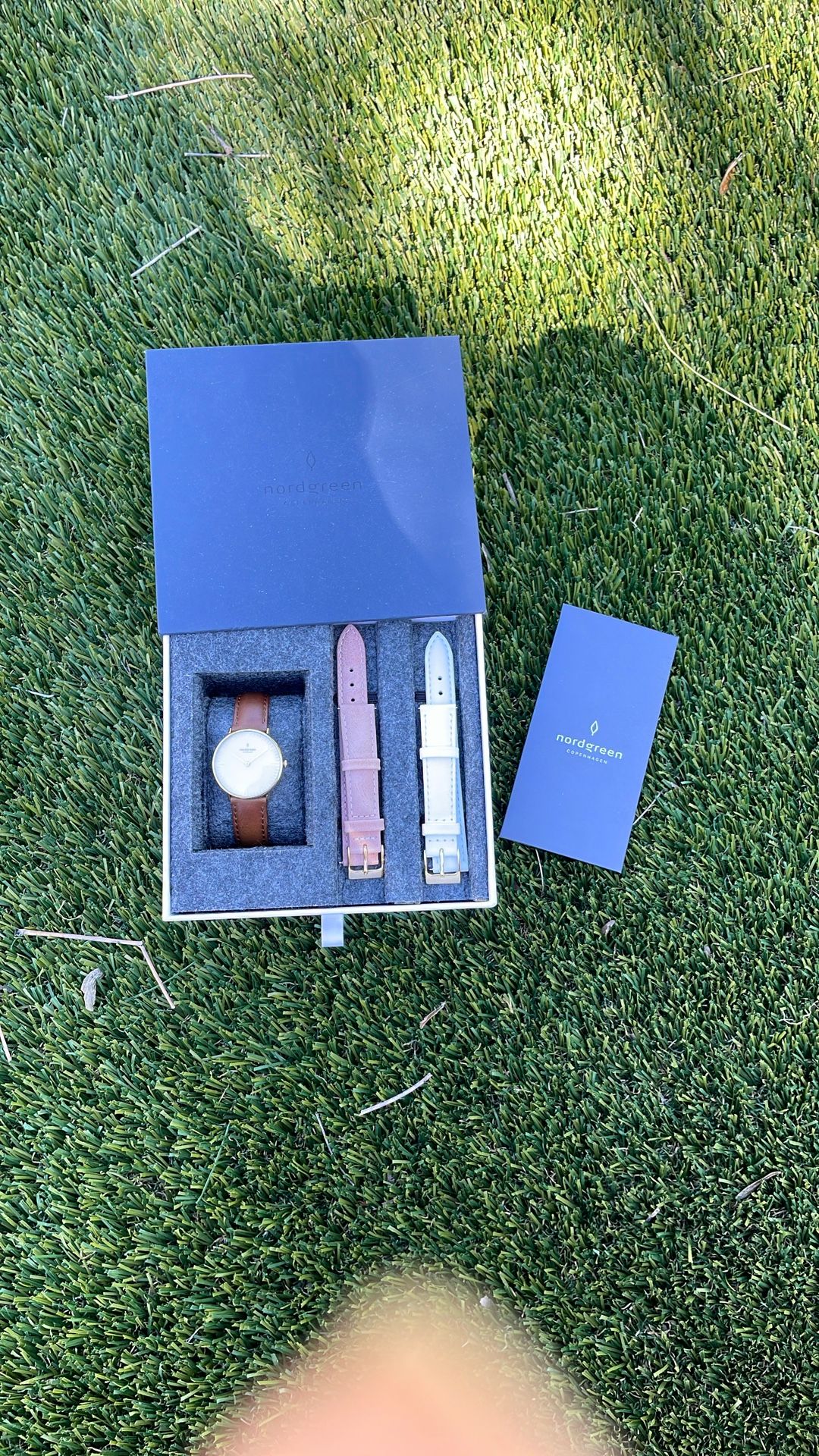 New in box. Women’s Brown Leather Watch With 2 Extra Straps Pink White. Brand is Nordgreen. 100% leather. Retails for over $175+