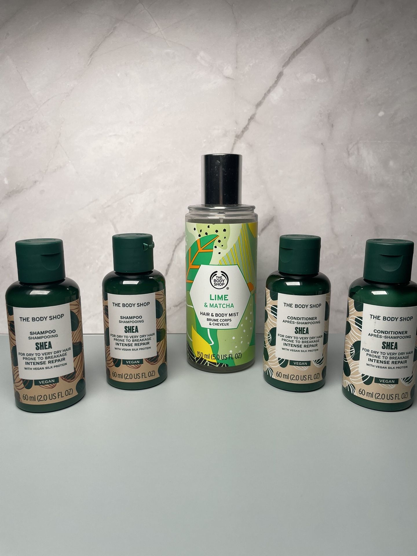 The Body Shop Bundle Hair And Body Mist (1) Shea Shampoo (2) And Conditioner (2)
