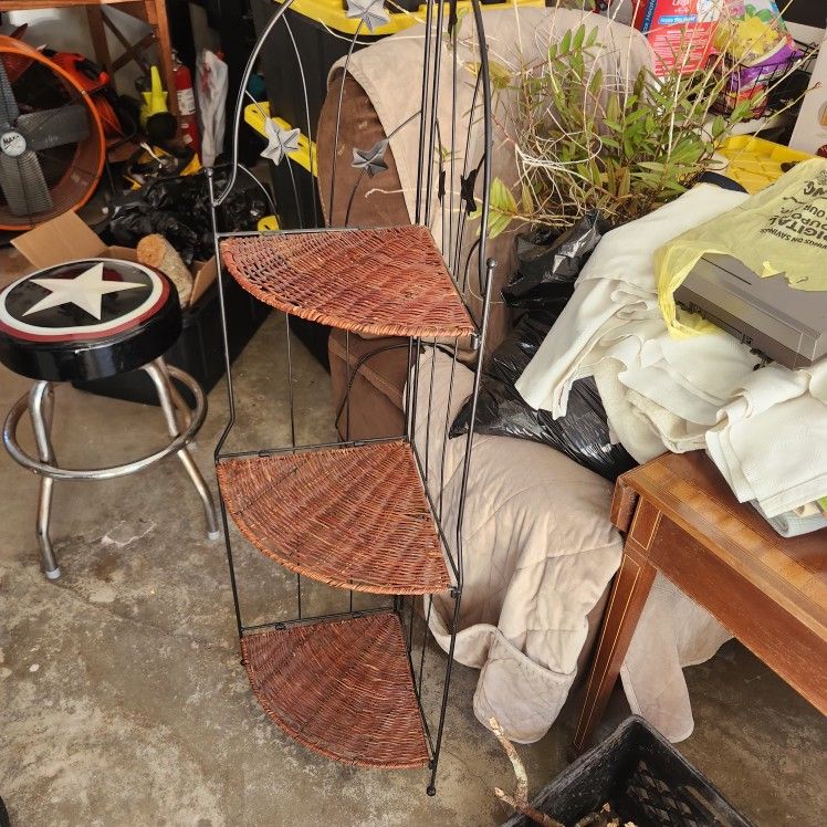 This plant rack does Fold 4 easy storage. It is 50 inches tall, 11 inches, deep 15.5 wide in Nice shape, selling for only $15, pick up in Stuart on cove road cash only.