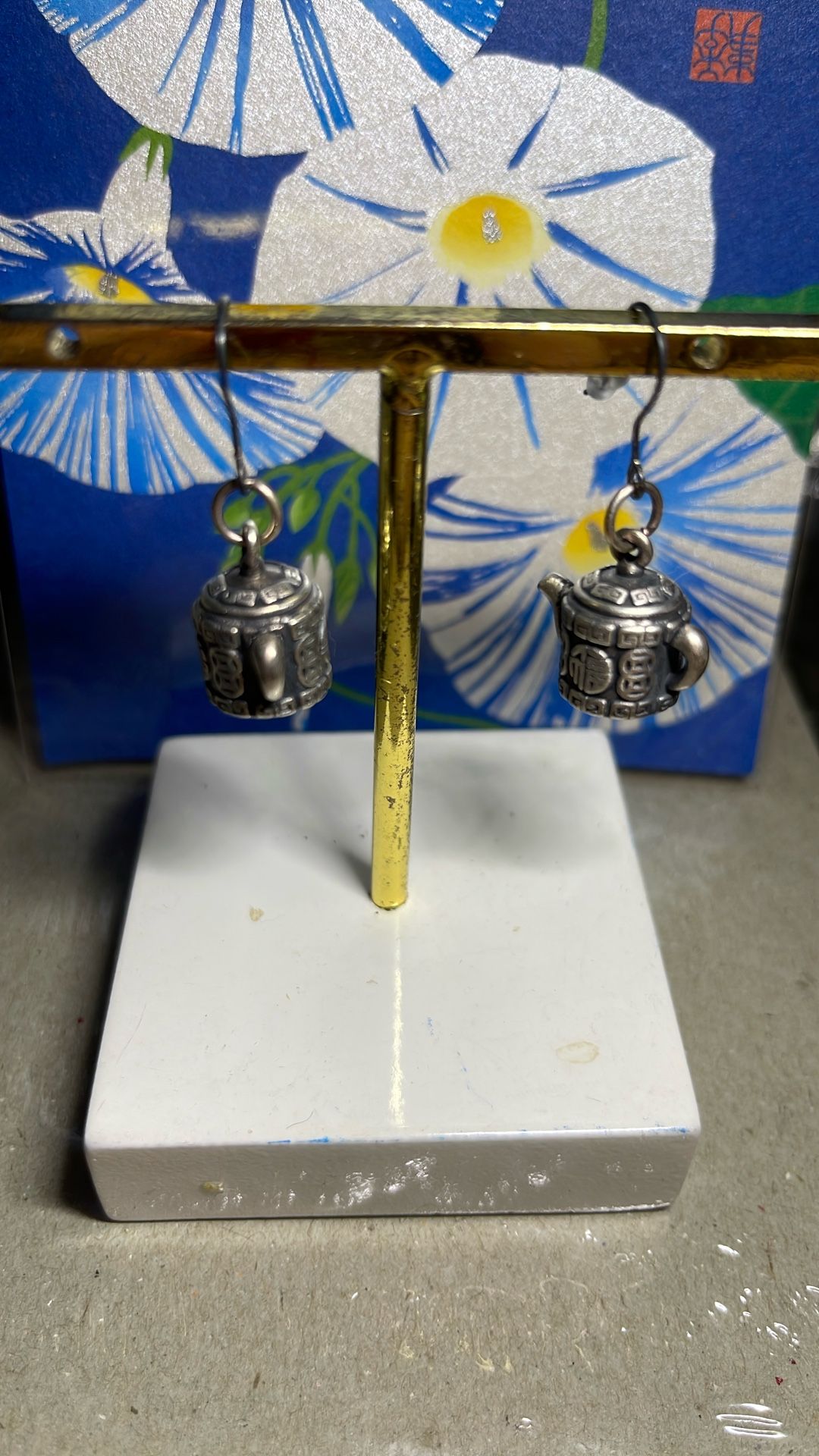 Beautiful carved .925 Silver Teapot earrings, .926 etched on bottom of teapot.