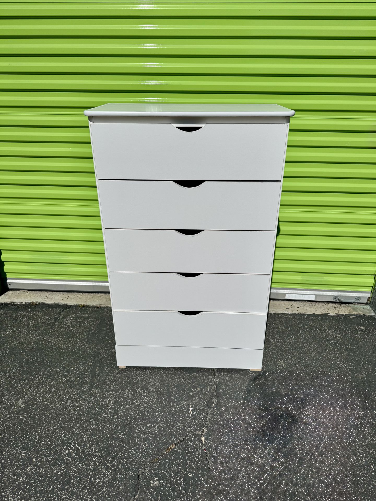 Upgrade your space with this stylish white 5-drawer dresser. Featuring a clean, modern design with smooth drawer fronts and built-in curved handles, this piece blends perfectly with any bedroom, apartment, or minimalist setup. Features: • 5 spacious drawers for plenty of storage • Smooth-glide drawers • Clean white finish - easy to match with any décor • Modern, handle-free design • Sturdy and functional Dimensions: Width: 29.5" Height: 47" Depth: 16" Perfect for clothing, kids' rooms, guest rooms, or even as extra storage in a hallway. Message me if interested!