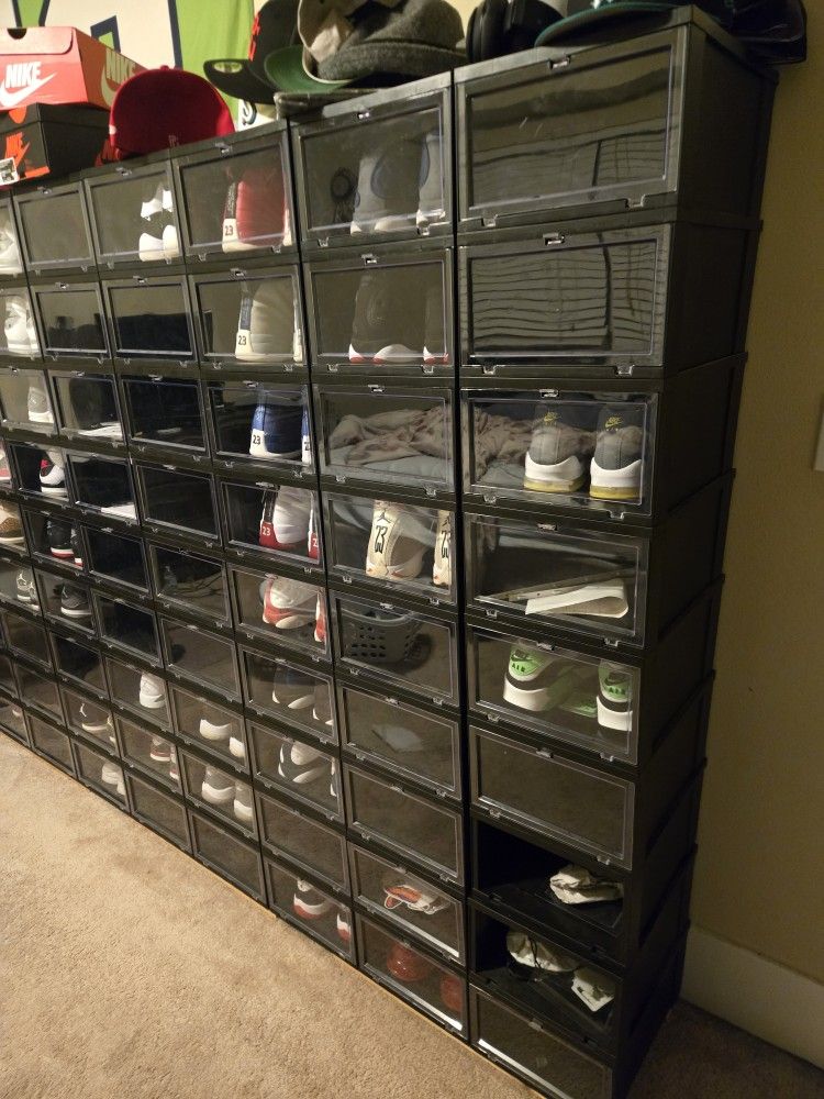 Selling my shoe collection. These boxes can fit up to size 13M. Selling in bulk or single. Boxes go for over $11 at the container store.
