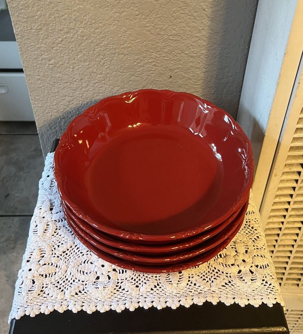 Princess House Bowls Grandes Rojos Para Pasta De Pavilion. Set De 4. Son Nuevas Pero Sin Caja. $50.