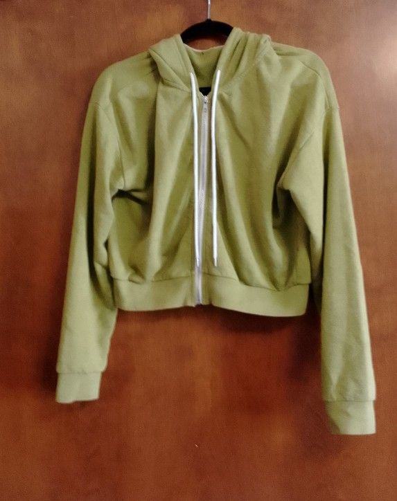 Green cropped zip up hoodie. No pockets.