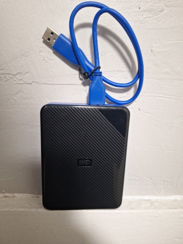 Make an offer !!! 4TB Western Digital External Hard Drive with USB 3.0 Cable. 4000GB storage capacity Portable and lightweight. Works on any computer. Works as a Gaming Drive for PS4 Pre-owned: Bought it new a few years ago and used it to store some music. It has a couple minor scuffs but works perfectly and still looks great.