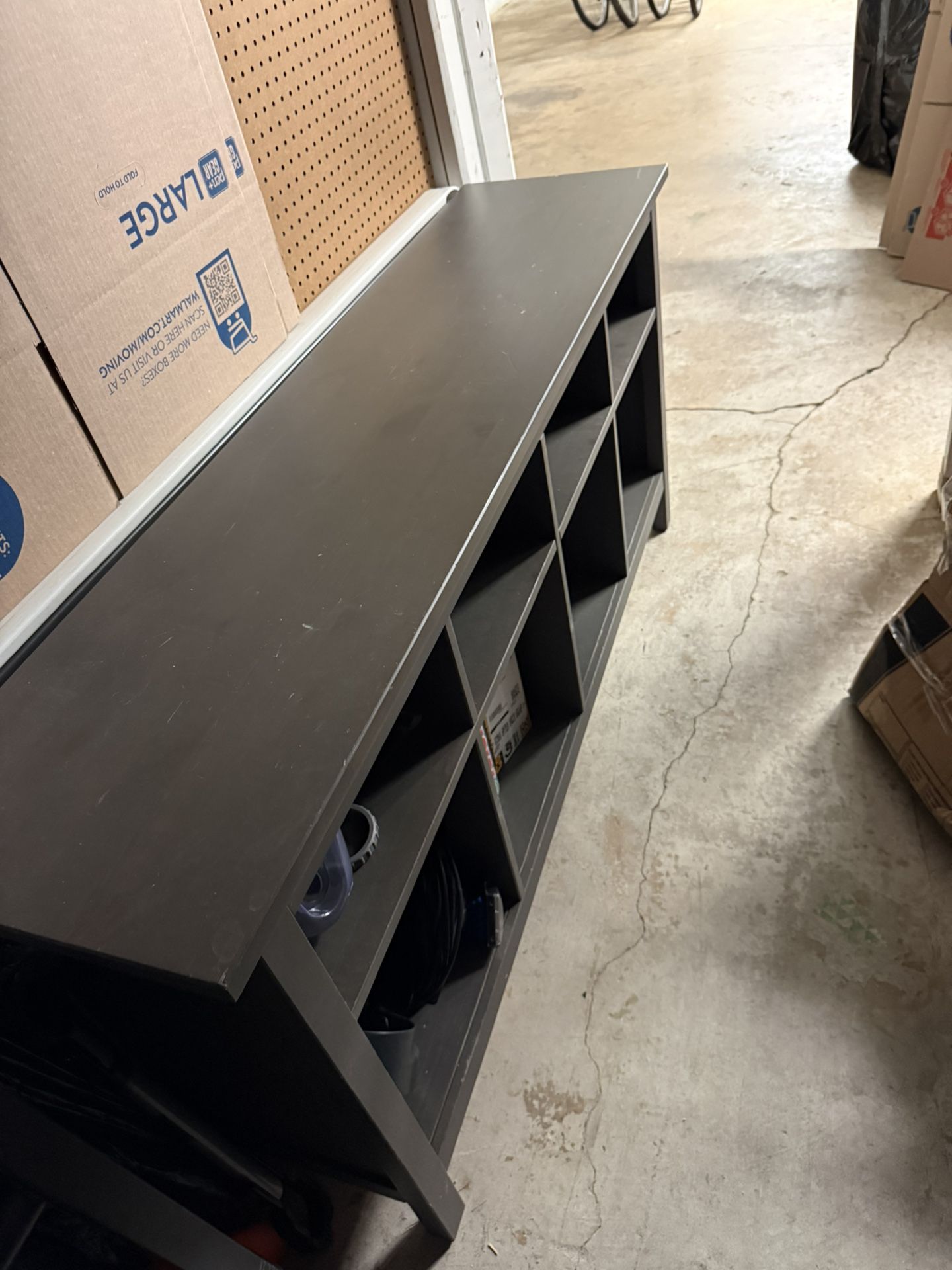 Used 10 compartment bookcase. Whether you want to organize your collection of art books or start your mini library, this bookcase is a perfect pick. It's simple, the clean-lined design is crafted from manufactured wood and features irregular shelves that offer plenty of space to stash reading materials or craft a decorative display.