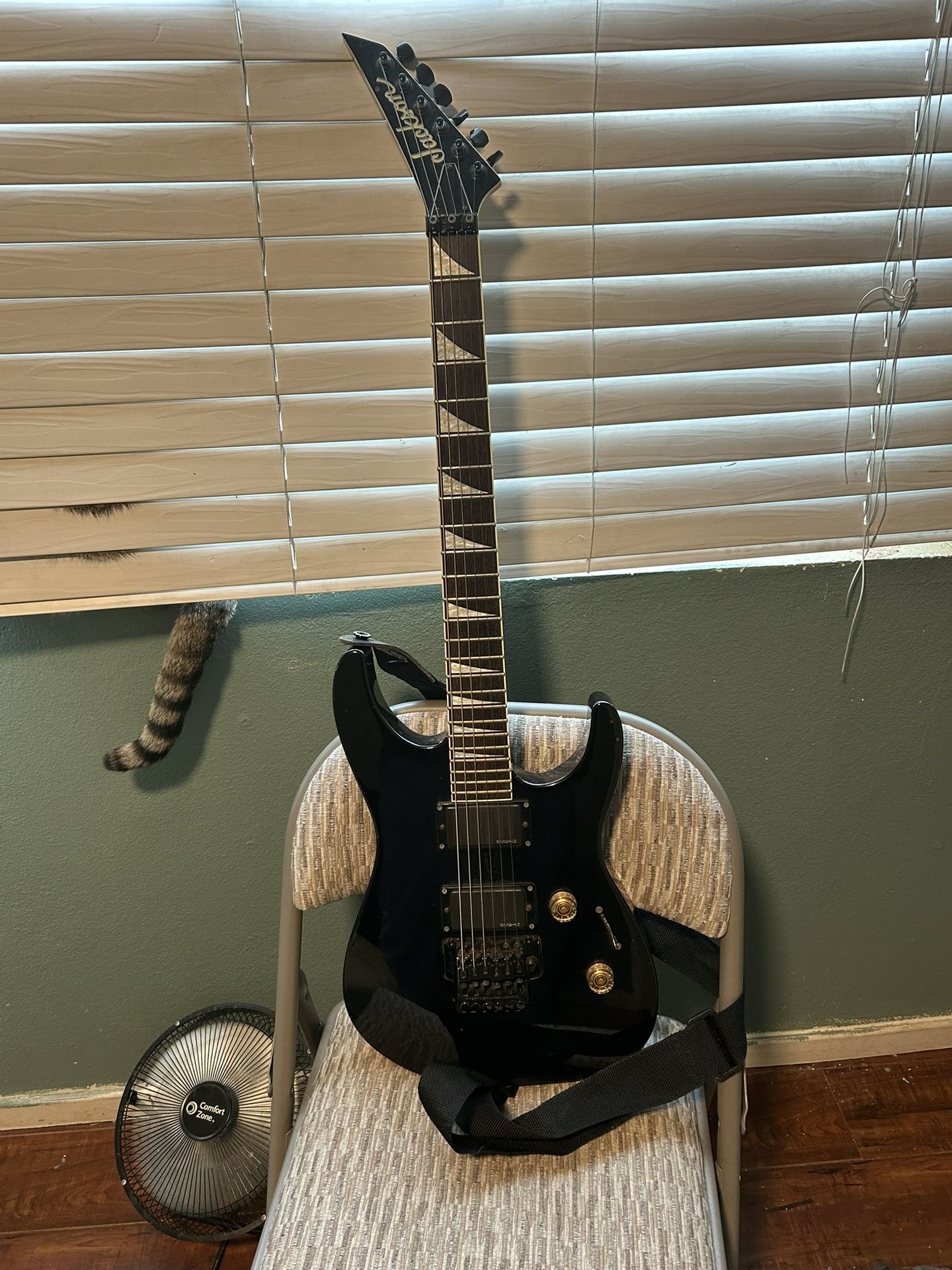 Price : $160 w/ case Local pickup, cash only Used and all imperfections have been shown in photos. The Jackson DXMG Dinky is a Japanese-manufactured (MIJ) solidbody electric guitar produced between roughly 2003 and 2010, designed for hard rock and metal with a basswood body, 24-fret rosewood fingerboard, sharkfin inlays, and active EMG-HZ humbucking pickups. Featuring a 25.5-inch scale and a fast-playing maple neck with a reversed headstock, it is widely regarded for high-quality construction at a mid-range price point.