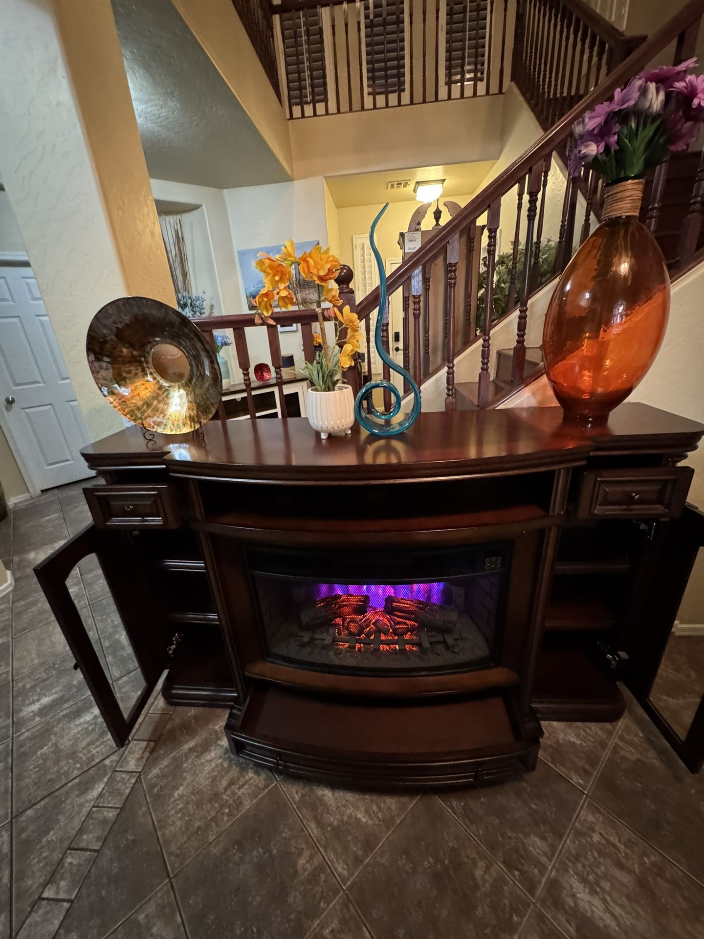 I'm offering a stunning fireplace and TV stand in excellent condition. It features a dedicated TV receiver compartment, stylish shelves with doors, and three spacious drawers—one on each side and a large one at the bottom. It boasts seven vibrant colors of realistic display flames, and the heater performs flawlessly, capable of warming over 750 sq ft. The dimensions are 72 inches long, 42 inches high, and 18 inches deep. This fireplace is among the finest available. I am located in Surprise at the crossroads of Cactus and Bullard. Thank you.