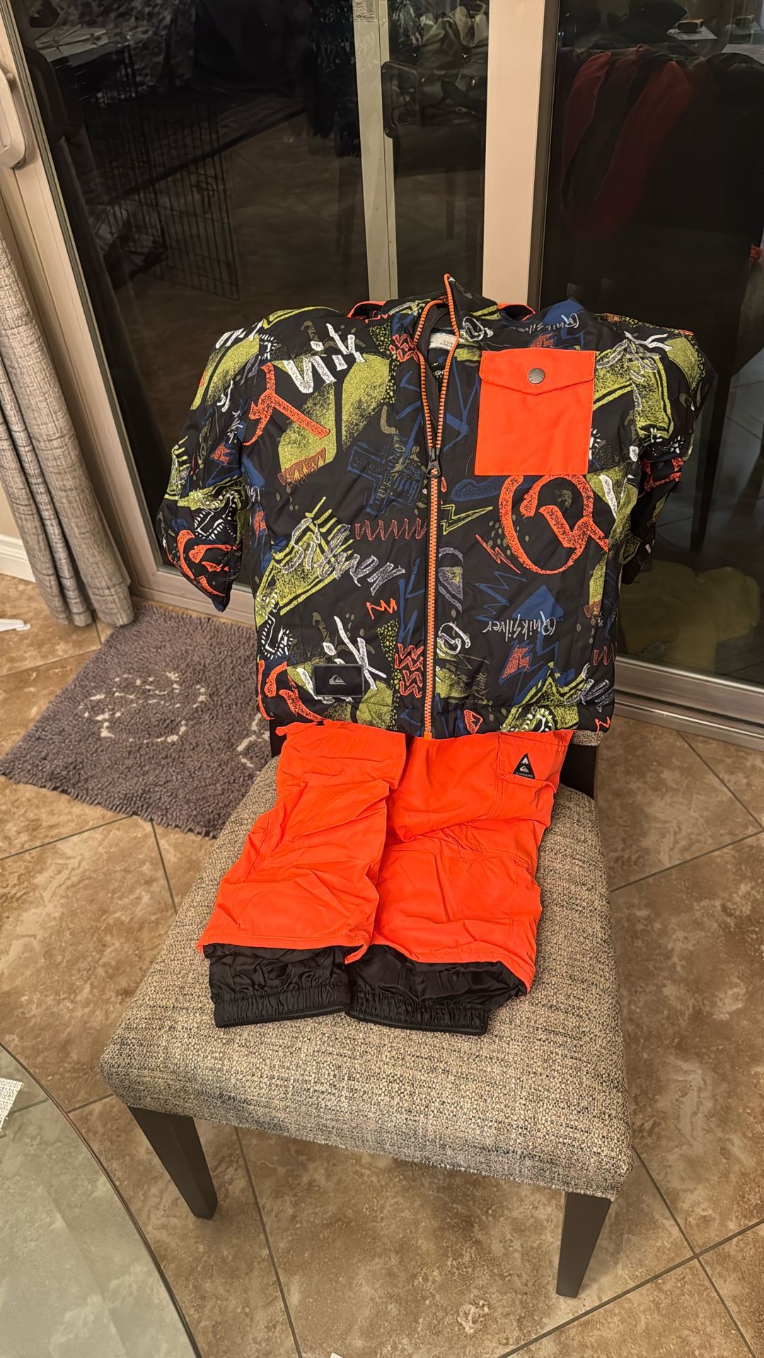 10K Quiksilver DryFlight® technology jacket and Quiksilver Boogie Boys Bib Ski Pants - orange. Only got used one time