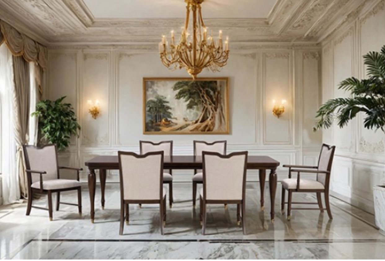 7PCS TABLE SET DARK CHERRY (F) $1399 FREE LOCAL DELIVERY / CASH NOT TAXES Transitional Dark Cherry Solid Wood, Rubberwood, Cherry Veneer, Poplar Burl Veneer 18 China Set w/ Wine Rack and 8 Drawers w/ Felt-lined Top Drawers on Hutch & Buffet French & English DovetailBuffet w/ Ball-Bearing Glides Upholstered Chair Back and Cushion Gold Capped Legs UV Stained Drawer DETAIL STYLE Transitional COLOR/FINISHDark Cherry MATERIAL Cherry Veneer, Poplar Burl Veneer, Rubberwood, Solid Wood PRODUCT DIMENSION Dining Table w/ 18" Leaf94"(76" + 1 X 18" LEAF)W X 42"D X 30"H PRODUCT DIMENSION Arm Chair (2/CTN)24"W X 24.5"D X 37"H (SEAT HT: 19", SEAT DP: 20") PRODUCT DIMENSION Side Chair (2/CTN)21"W X 24.5"D X 37"H (SEAT HT: 19", SEAT DP: 20")