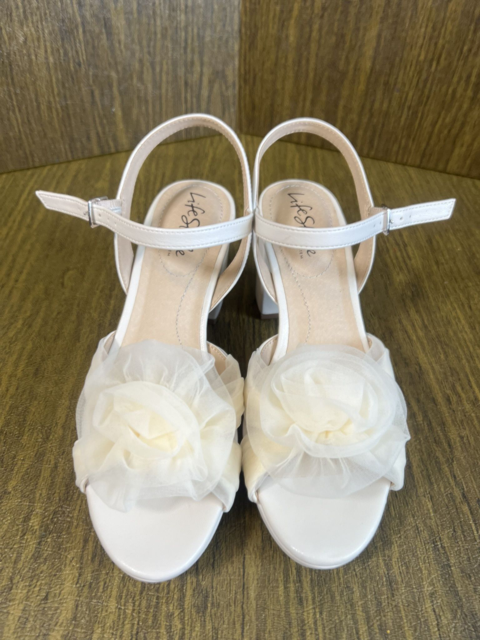 WEDDING / Life Stride Soft System Beautiful Shoes White Cream Rose Flower Heels Slip on Straps / Special Occassion Bridal Shoes / Woman’s 6 / New w/o