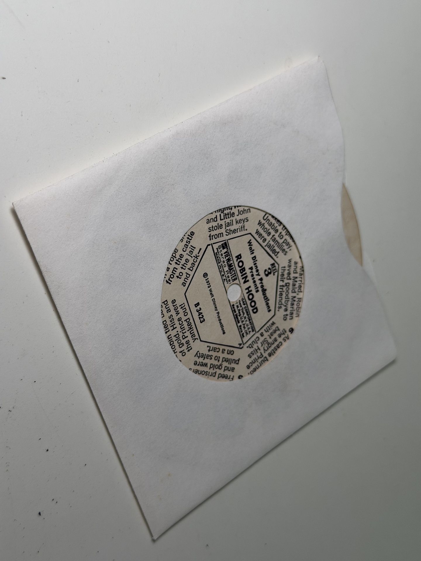 Original Walt Disney’s Robin Hood View-Master reel. Single stereo 3-D reel featuring scenes from the classic animated film. For use with standard View-Master viewer (not projector). Comes in paper sleeve. Shows normal vintage wear (see photos). Great Disney collectible or replacement reel. disney robin hood viewmaster, vintage 3d reel, gaf viewmaster disney, retro stereo viewer reel, classic disney collectible, replacement reel
