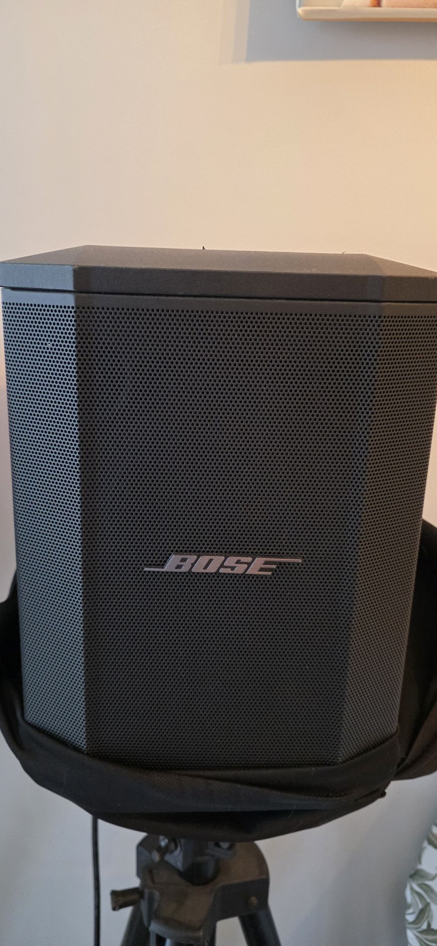 Slightly used, Portable Bose S1 Pro system with battery. Comes with its original cover. Has multiple inputs for mics or instruments, plus aux in. Volume, bass, treble, and reverb controls for each channel. Super versatile for music, speaking, or just good tunes. Cover is designed to be on all the time without effecting sound while in use.