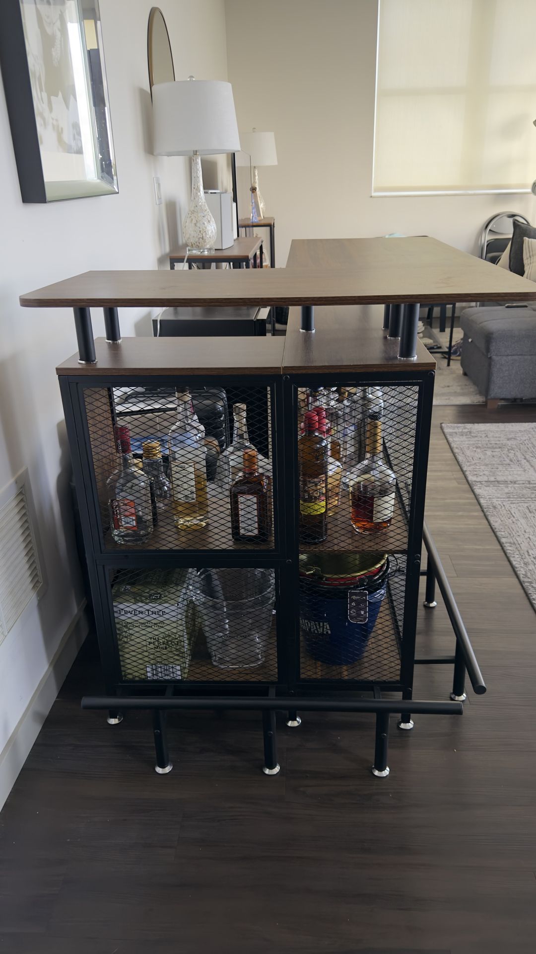Tribesigns Home Bar Unit, L-Shaped Bar Table with Stemware Racks and 2-Tier Shelves, Corner Mini Coffee Liquor Cabinet with Footrest for Home/Kitchen/Pub, Rustic Brown Size: 47.24"D x 35.43"W x 41.93"H At Amazon the price is $224.99 selling for $130 very new