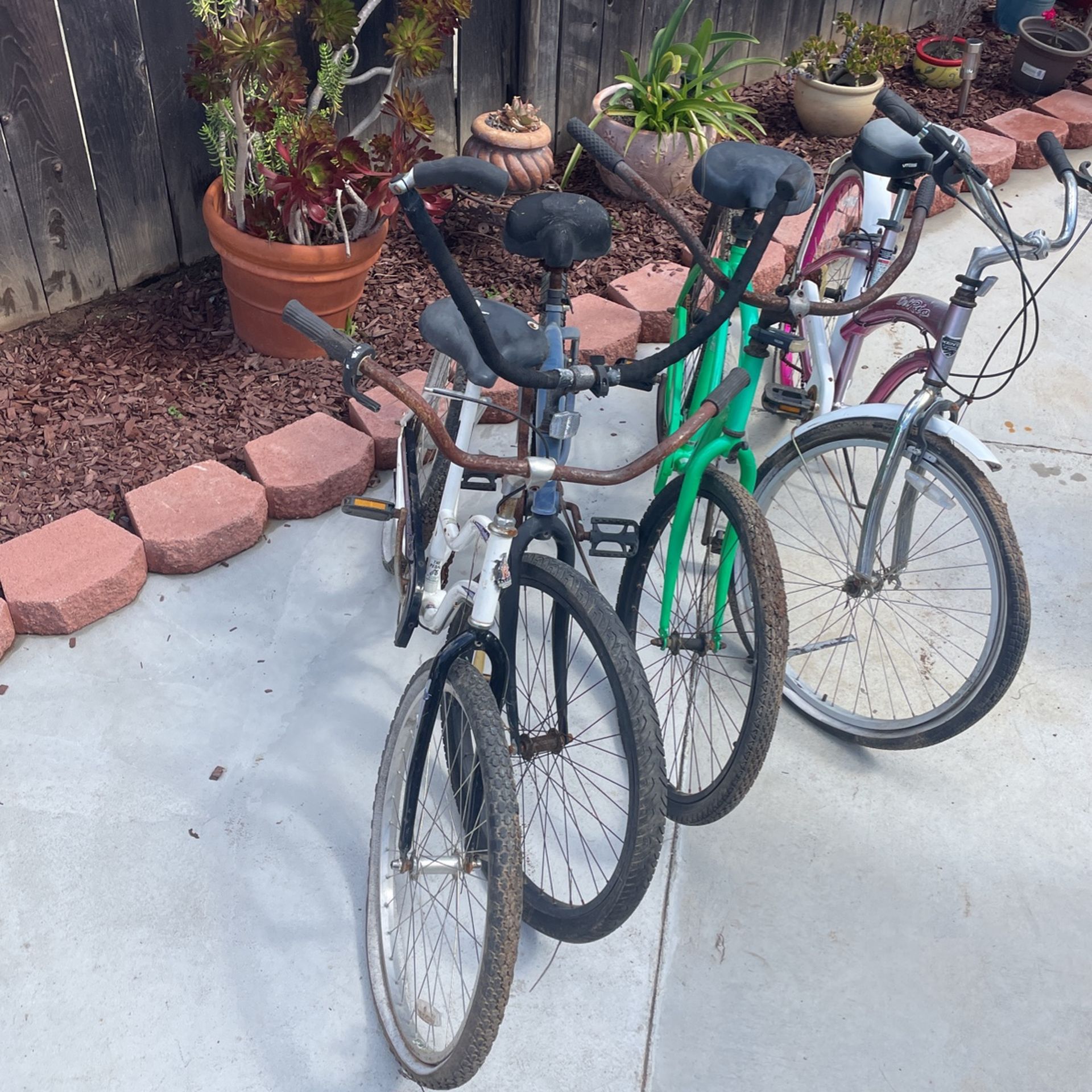 Beach cruisers Kids bikes Hardly used Always outside Rust is unfortunately on some bikes but steel wool will bring out the chrome shine $120 OBO Questions? I’ve got answers!