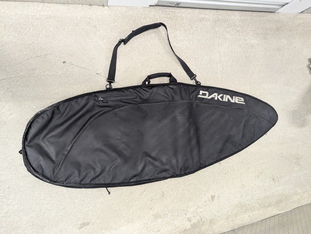 Black 5'4" Dakine day surfboard bag in ok shape and zipper works.