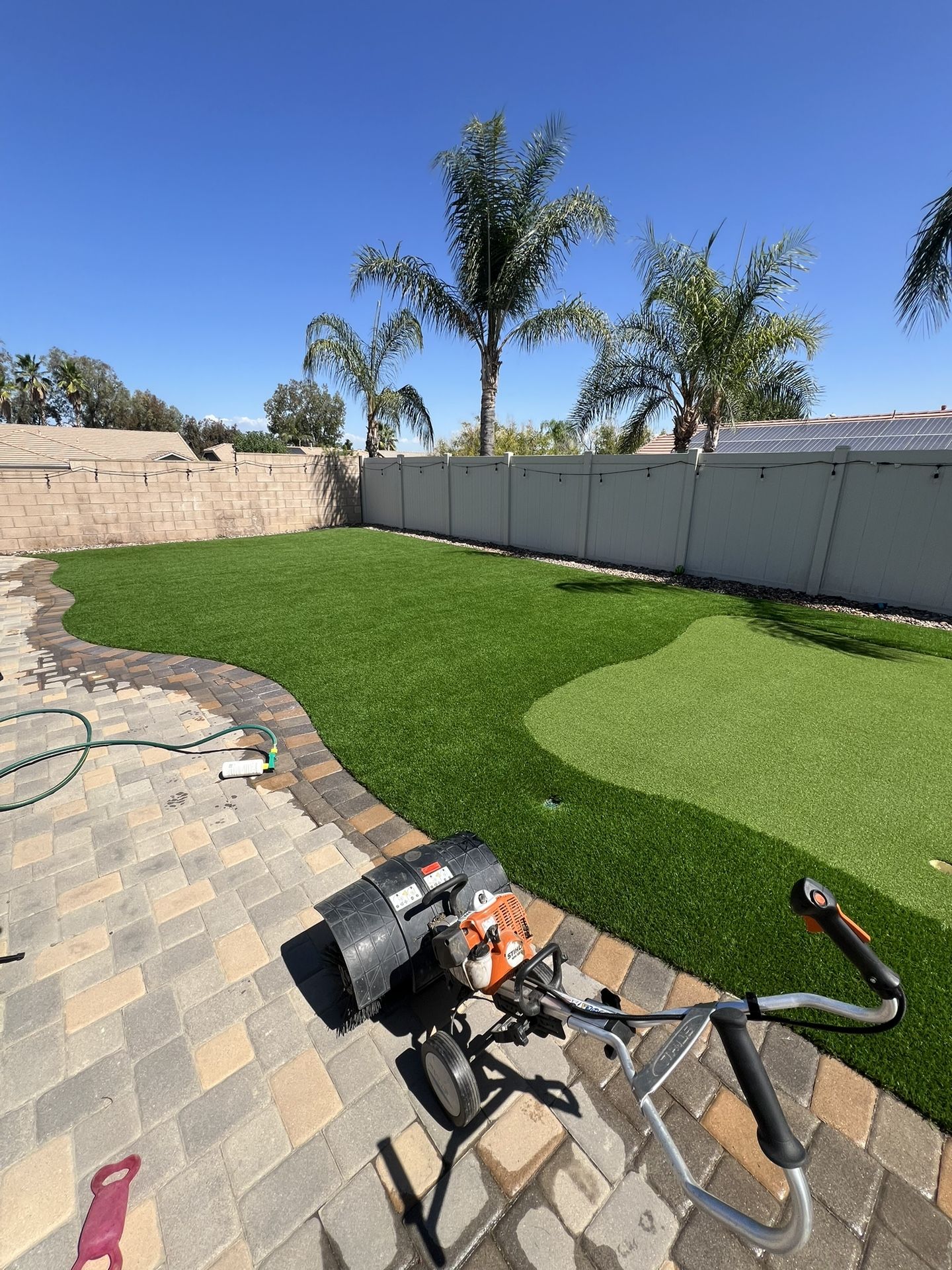 Get your turf looking new again!! Whether it’s before or after hosting an event or even just to remove any pet odors. A maintenance is always recommended for longevity of your turf. The Process -Brush up the turf / remove debris in turf -Add silica sand infill or zeolite infill upon request for additional charge -Blow infill to the bottom of blades with blower -A second brush with the power broom -Spray enzyme turf shampoo for fresh odor -Clean up