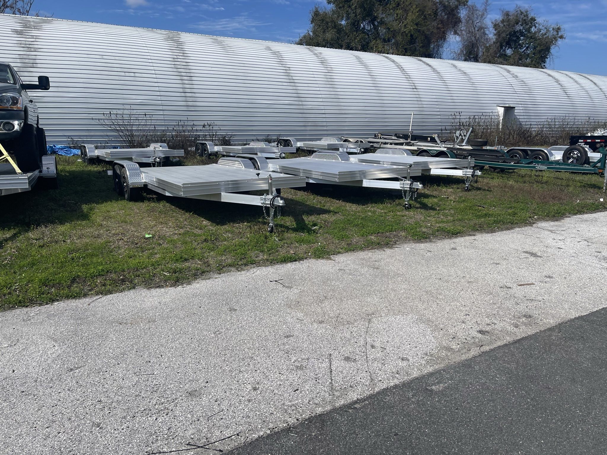 Trailer mania offers brand new. all aluminum single Car Haulers. This is a 2023, 7,000llb GVWR that carries 5,850lbs. They are light weight and heavy duty. contact for price. They are Really Really nice. ๐๐๐ Price is $8,500 plus tax. Trailer Specs 14ft flat deck with 4ft dove tail Trailer is 21ft overall. Can make it longer. 80inches wise between the fenders 205-75-14inch radial Tires withal wheels Electric 10inch drum brakes on both axles 3500lb torsion axles Diamond plates fenders 4ft Ramps storeโs under trailer LED lights Thanks Chris